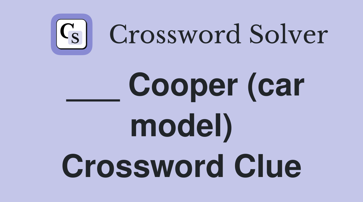 Cooper (car model) Crossword Clue Answers Crossword Solver